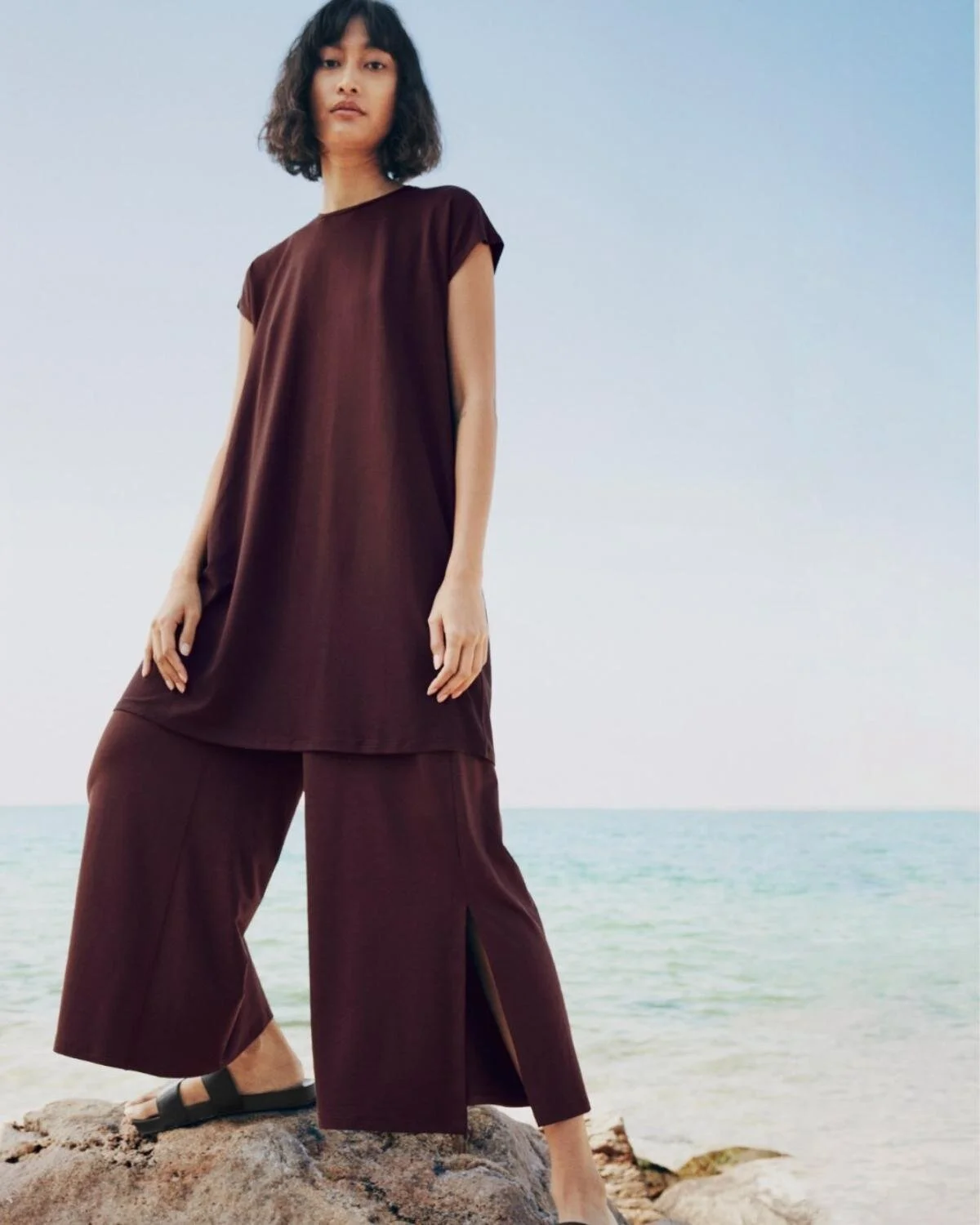 Eileen Fisher is the ultimate sustainable capsule wardrobe brand. The designer creates simple, timeless garments in classic colors from earth-minded fabrics like organic linen, organic cotton, hemp, and regenerative wool. Taking it full circle, Eileen Fisher also has a buy-back program and resale site.