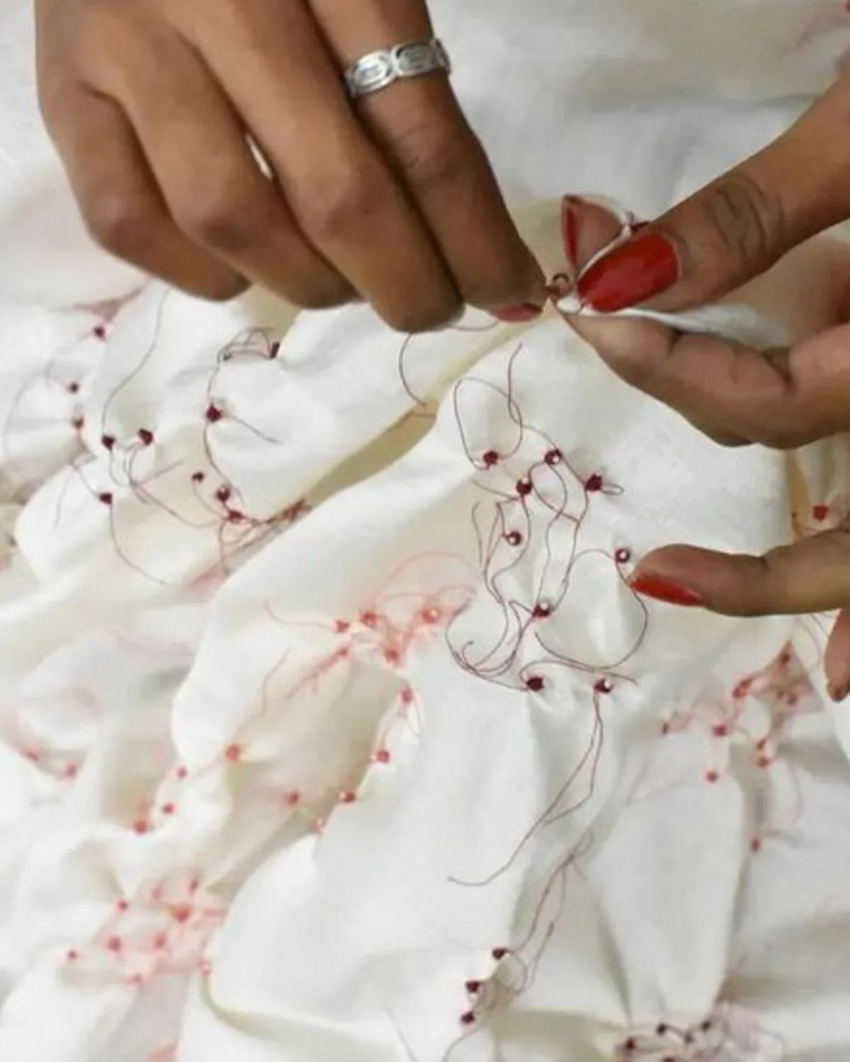 So, this water returns to nature as a cocktail of carcinogenic chemicals, residual dyes, salts, mordants, micro-fibers, and heavy metals that not only hurt the environment but pollute essential water sources used by surrounding communities.